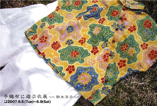 手織り布に遊ぶ衣展 2007年6月5日(火)〜6月9日(土) AM12:00〜PM7:00 (最終日4:00まで)