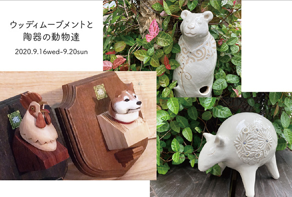 ウッディムーブメントと 陶器の動物達