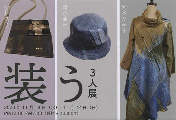 河本たか子(染・織り) 小林浩子(陶アクセサリー) 清水亜土(草木染帽子)