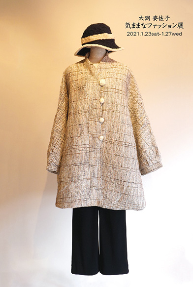 大量の材料を惜しみなく使う大渕委佐子の着物の服展です。