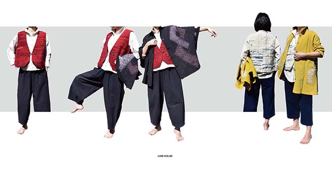 絞り染め、刺し子、手織りのニットなど