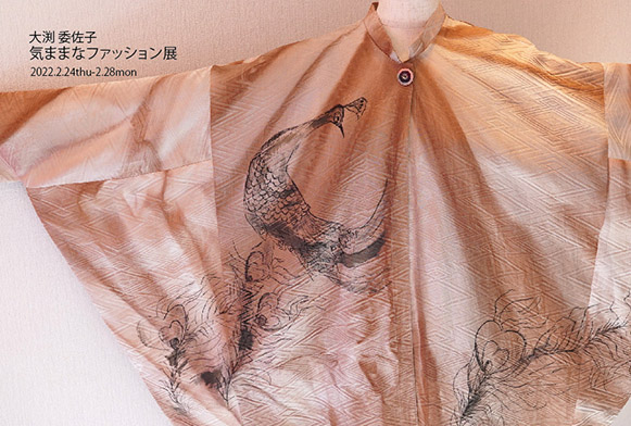 大量の材料を惜しみなく使う大渕委佐子の着物の服展です。
